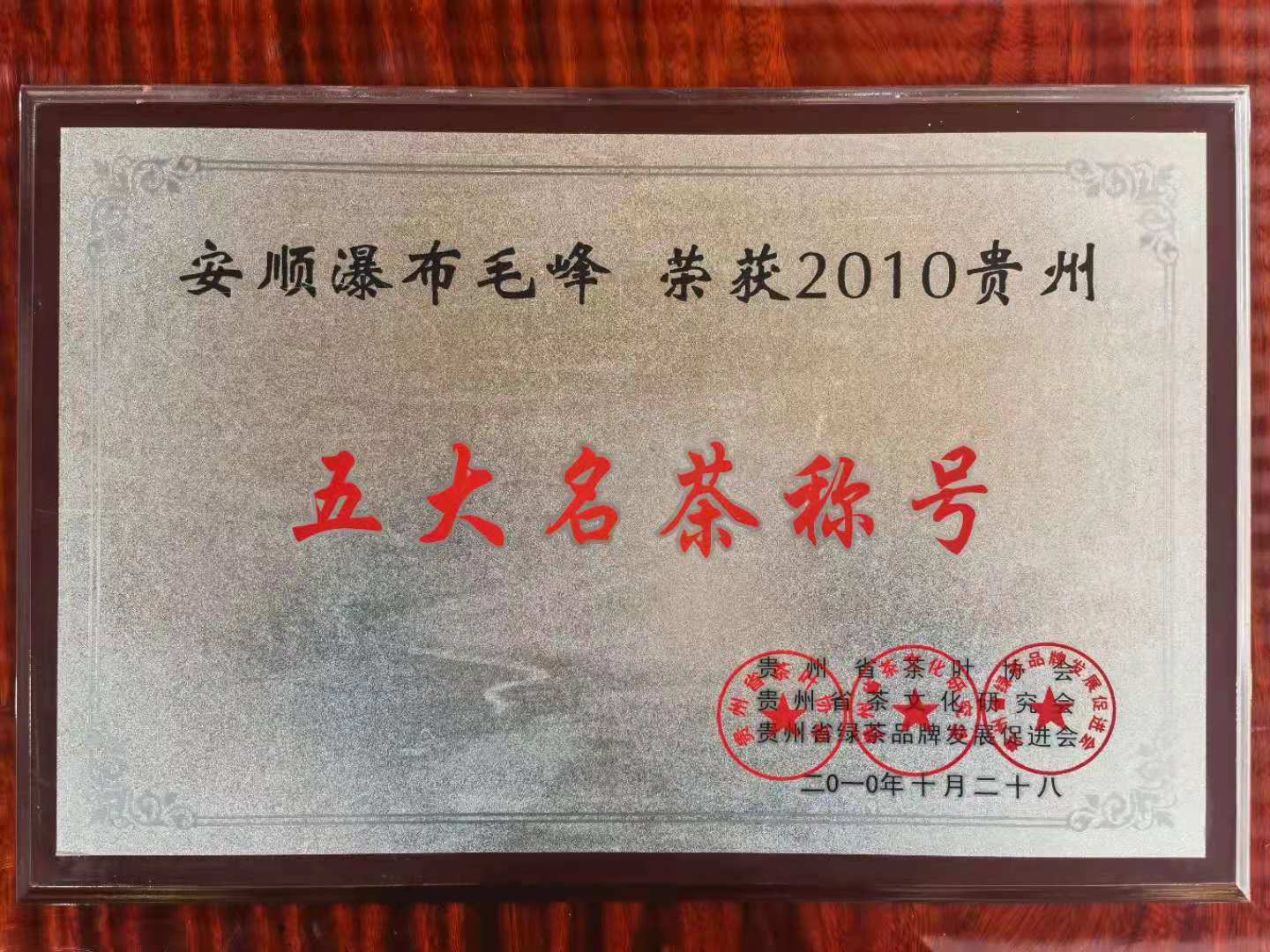 首頁 > 榮譽資質 > 安順瀑布毛峰榮獲2010貴州五大名茶稱號