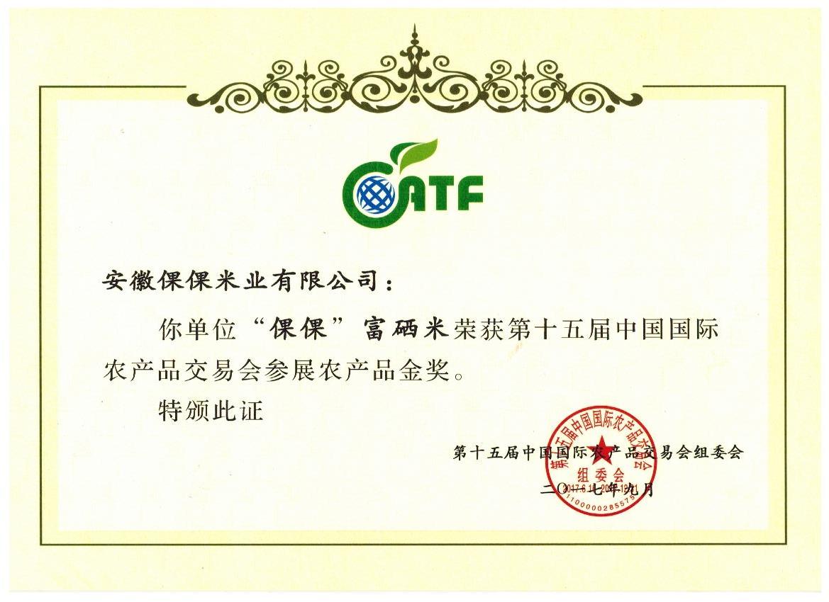 首頁 > 資質認證 > 第十五屆中國國際農產品交易會金獎