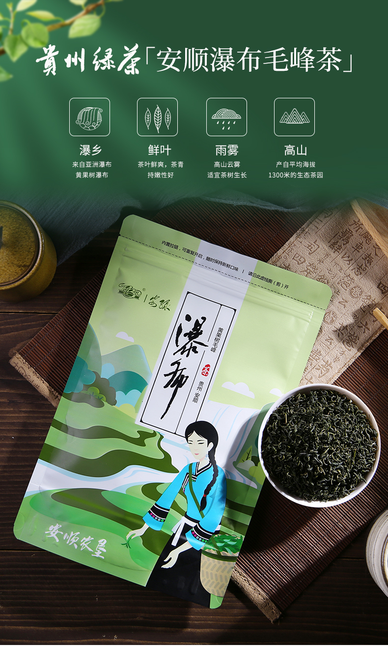 瀑布茶品牌是安順市人民政府主打茶葉品牌,省級(jí)重點(diǎn)打造區(qū)域公共品牌,屬貴州五大名茶,先后獲得獲“中國(guó)農(nóng)產(chǎn)品區(qū)域公用品牌”、“貴州省著名商標(biāo)”、“貴州省名牌產(chǎn)品”等榮譽(yù)稱號(hào)。近年來(lái),在各級(jí)部門(mén)大力推動(dòng)下,瀑布茶品牌不斷發(fā)展壯大。截止目前,現(xiàn)有瀑布茶品牌加盟企業(yè)23家,輻射茶園面積200000余畝,其中綠色食品認(rèn)證茶園基地面積7000余畝,有機(jī)食品認(rèn)證基地面積2500畝。擁有“瀑布毛峰”、“瀑布翠芽”、“瀑布紅茶”、“瀑布翠龍”等產(chǎn)品,多次獲得“中綠杯”、“中茶杯”、“華茗杯”等大獎(jiǎng);分別榮獲第14屆中國(guó)國(guó)際農(nóng)產(chǎn)品交易會(huì)金獎(jiǎng)、第18屆中國(guó)綠色食品博覽會(huì)金獎(jiǎng)、“黃山杯”首屆全國(guó)傳統(tǒng)名茶產(chǎn)品質(zhì)量特別金獎(jiǎng)、安順十大旅游商品等殊榮及稱號(hào)。