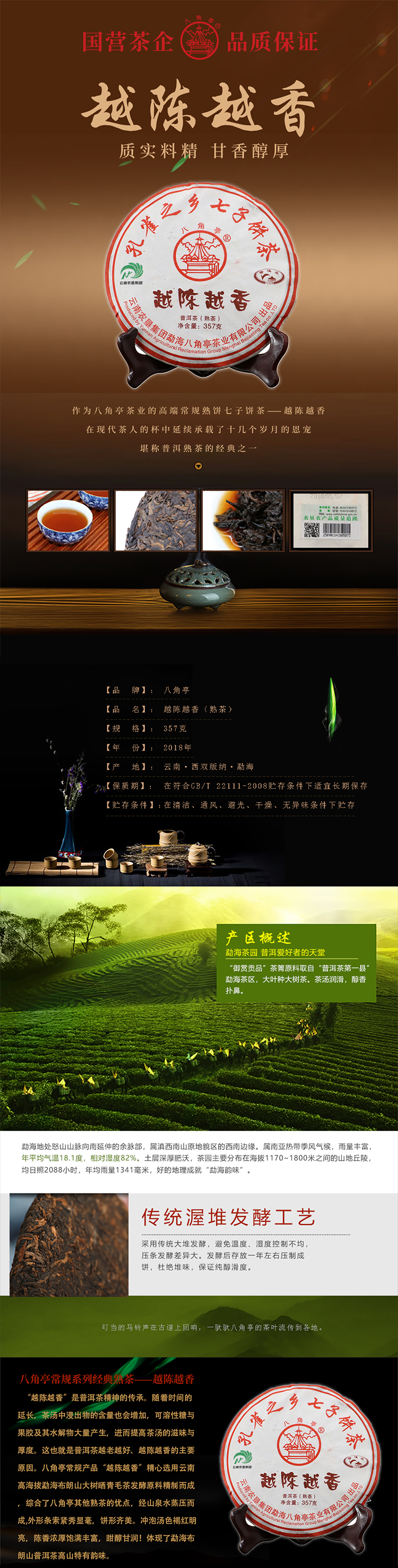 云墾茶業(yè)集團下屬茶葉生產(chǎn)企業(yè)——云南農(nóng)墾集團勐海八角亭茶業(yè)有限公司原名黎明茶廠,是我國歷史最為悠久的茶企之一,曾位列“中國普洱茶十大知名品牌”“十大最受歡迎茶葉品牌”、“中國普洱茶十大暢銷品牌”中,成為今天市場上最有影響力的品牌之一。公司產(chǎn)品獲得“綠色食品”、ISO9001、 HACCP和云茶品牌(YC)4項認證,連續(xù)獲得“云南名牌農(nóng)產(chǎn)品”“云南名牌產(chǎn)品”“云南省著名商標(biāo)”等品牌榮譽,公司生產(chǎn)的多款普洱茶在歷次專業(yè)評比中多次獲得特等金獎和金獎。在2018第五屆中國企業(yè)五星品牌論壇上,云南農(nóng)墾集團勐海八角亭茶業(yè)有限公司上榜中國普洱茶行業(yè)影響力品牌——“金芽獎”,公司負責(zé)人陳勝軍先生獲“陸羽獎”,被授予2017“國際十大杰出茶人”榮譽稱號。