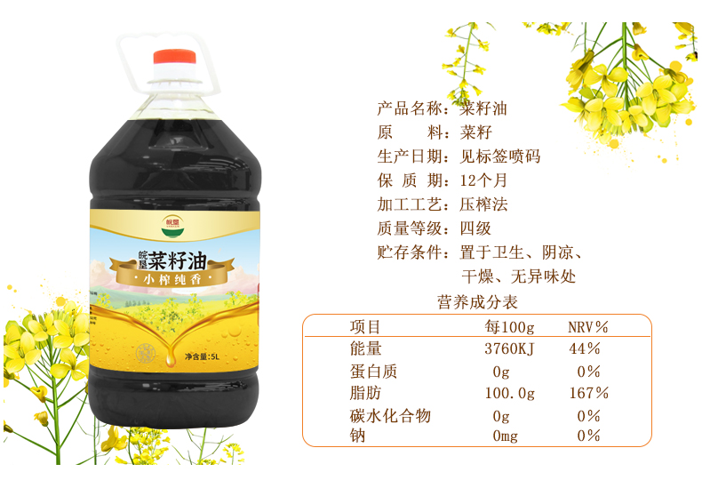 皖墾菜籽油5L小榨純香非轉(zhuǎn)基因